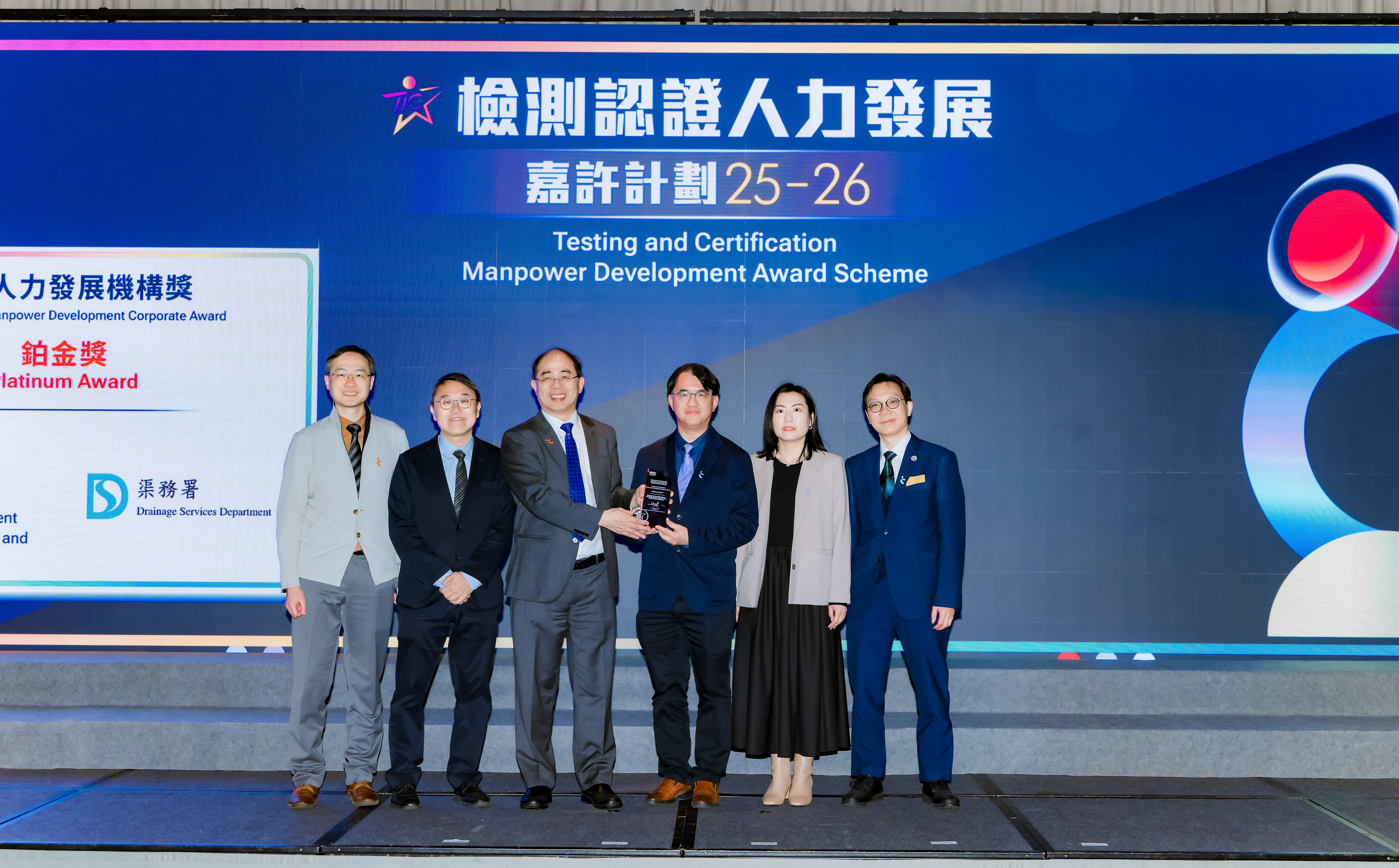 渠務署榮獲2025-26年度檢測認證人力發展嘉許計劃「檢測認證人力發展機構獎(鉑金獎)」
