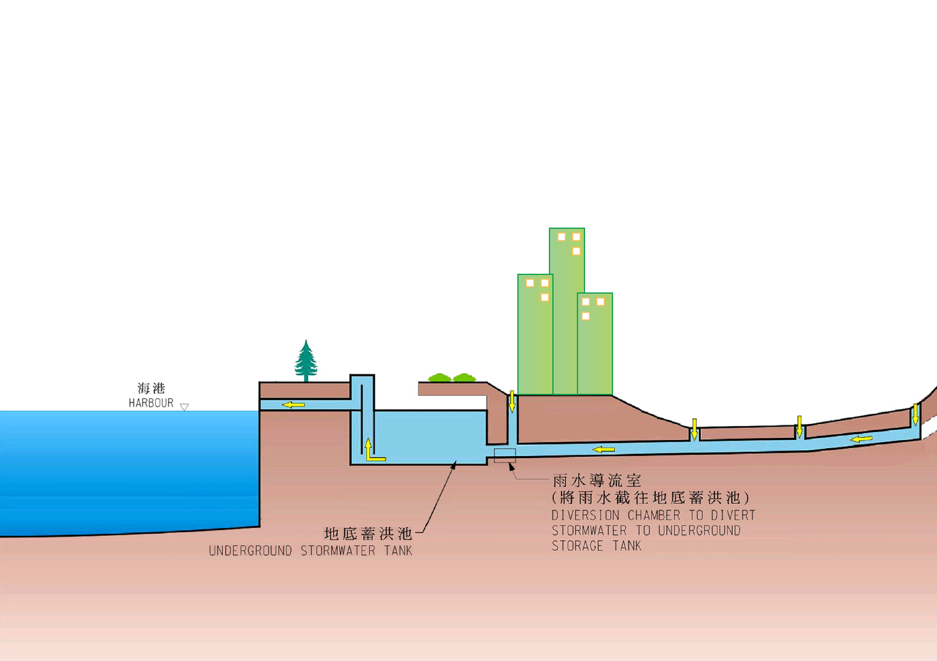 In the past, during rainy seasons, flooding occured in various areas of Northern Hong Kong Island. The main causes of flooding are as follows: