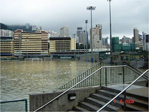 在 2000 年8 月、2006 年4 月和2008 年6 月发生特大暴雨期间,跑马地和邻近区域,包括成和道、黄泥涌道、摩利臣山道、立德里、跑马地马场和跑马地游乐场,均曾发生严重水浸。在这些交通繁忙和人口稠密的地方,要沿现有排水渠走线进行大规模扩阔工程以纾缓水浸问题,实有一定限制,因为这会涉及大规模掘路工程,不但对公众造成严重滋扰,而且在某些地点因地底公用设施已相当拥挤,以致实际上并不可行。 于游乐场底下建造的地下蓄洪池可于特大暴雨期间暂存从该游乐场和上游集水区所收集的部分雨水,减低流经下游雨水排放系统的高峯流量。暴雨过后,暂存在蓄洪池内雨水便会经顺势而下的箱形暗渠由水泵排放走,大大减低湾仔及跑马地低洼地区的水浸风险。