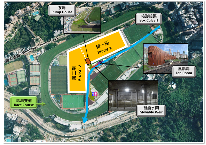 - 容量達3萬立方米的第二期地下蓄洪池 (已於2017年3月完工)