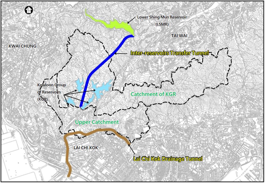 In this regard, the Drainage Services Department has formulated the Lai Chi Kok Transfer Scheme, which comprises the construction of the Lai Chi Kok Drainage Tunnel and the Inter-reservoirs Transfer Scheme (IRTS) for improving the capacity of the drainage system at the aforesaid districts. The Lai Chi Kok Drainage Tunnel was completed in 2012 to intercept the surface runoff from the uphill catchment areas for direct discharge to the Victoria Harbour. The Inter-reservoirs Transfer Tunnel would transfer the collected surface runoff from the KGR to the LSMR, reducing the overflow entering the drainage system of downstream urban areas and thereby enhancing flood prevention capabilities in Sham Shui Po, Cheung Sha Wan and Lai Chi Kok. At the same time, the overflow transferred to the LSMR can be conveyed to Sha Tin Water Treatment Works for treatment as drinking water, thereby conserving the precious water resources.