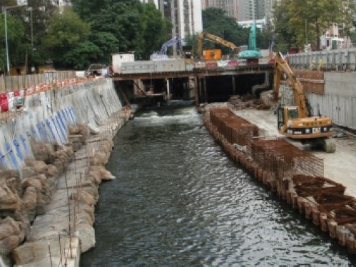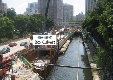 Although the construction of box culvert is still in progress, we have removed the existing water mains, sewers and the public utilities located at the bottle-neck of the river to enhance the flow capacity and thus relieve the flooding risk.
