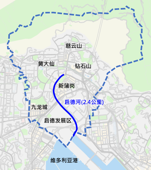 现有启德河总长度约2.4公里,由蒲岗村道起,沿彩虹道经东头邨和太子道东至启德发展区,最后连接维多利亚港,是东九龙其中一条主要排洪渠道。现时启德河的排洪能力未能符合现行防洪标准,在过往暴雨期间,启德河旁的彩虹道曾出现严重水浸情况,影响黄大仙及新蒲岗地区。有见及此,本署于启德河进行改善工程,以提升启德河的排洪能力,减低相关地区的水浸风险。