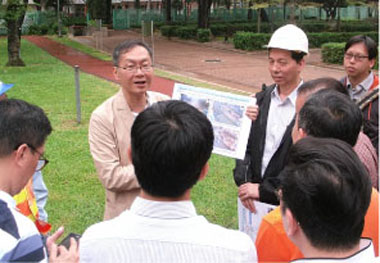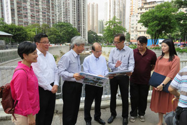 部分黄大仙区议会议员于2016年4月22日参观了启德河改善工程。我们向议员介绍了启德河改善工程的工程进展及摩士公园(一号公园)的改善计划。
