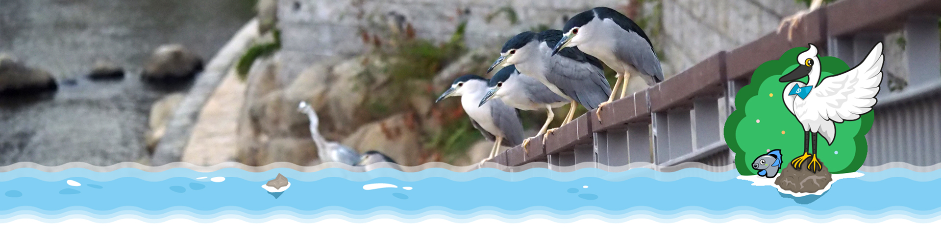- 鳥︰小白鷺、夜鷺、黑鳶(麻鷹)、原鴿、珠頸斑鳩、噪鵑、普通翠鳥、白胸翡翠、家燕、灰鶺鴒、白鶺鴒、紅耳鵯、白頭鵯、鵲鴝、紫嘯鶇、烏鶇、黑臉噪(眉鳥)、黃眉柳鶯、北灰鶲、大山雀、暗綠繡眼鳥、白腰文鳥、樹麻雀、黑領椋鳥、八哥、中嘴烏鴉、灰喜鵲、家鴉及大白鷺