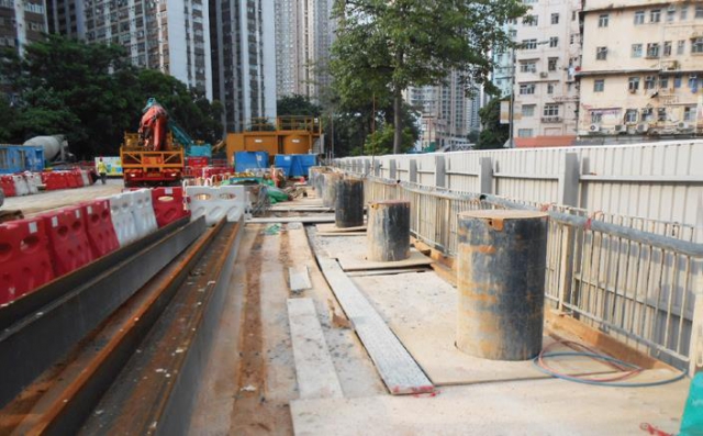 安裝鋼管樁的準備工作(東隆道行人橋至樂善道橋)