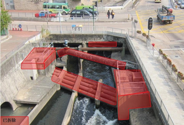 移除在東頭二邨對出兩條橫過河道的污水渠