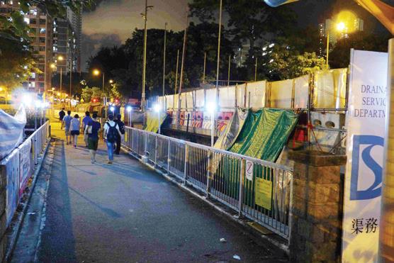 在東隆道行人橋兩旁加裝了臨時照明設施。