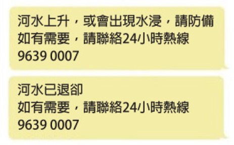 - 向附近商鋪及相關人士發出水浸提示短訊。