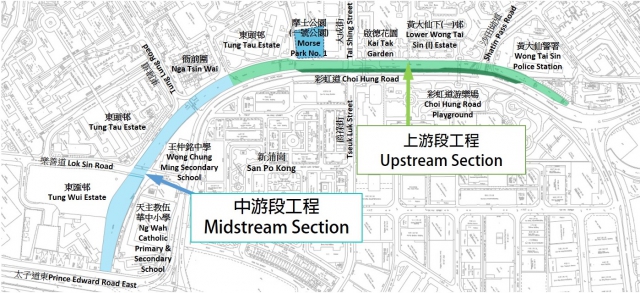 | 工程合約 | 重建、改善及修復一段由黃大仙警署至東頭二邨的啟德河 | 重建和修復一段由東光道至太子道東的啟德河 |