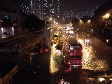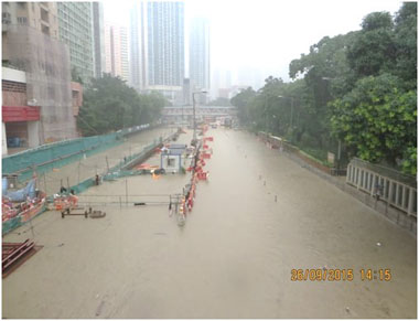 下列圖片攝於2008,2010,2014及2015年,顯示黃大仙區一帶的水浸情況。