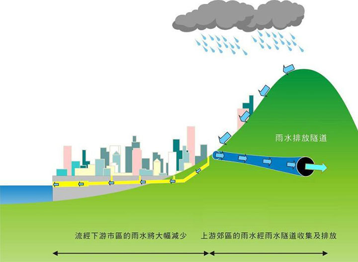 傳統防洪方法需於市區拓建排水管道。而隧道截流是創新的防洪方法,施工位處巿區外圍,減免開挖巿區繁忙街道的需要,令工程對巿民生活、交通及商業活動的影響減至最低,同時達到防洪的目的。