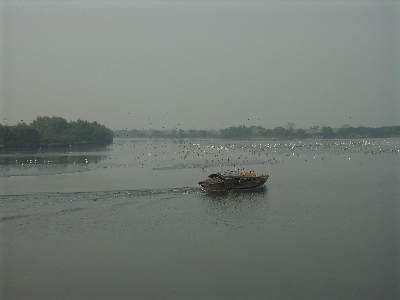 從這裏向元朗市中心方向望,不遠處就是錦田河的天然舊河道與山貝河交匯之處。現在錦田河與山貝河在南生圍以北匯合,但是在河道整治工程之前,錦田河天然舊河道與山貝河交匯之處是在南生圍以南。