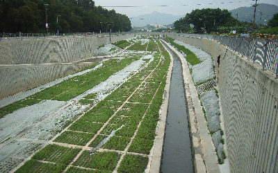 元朗排水繞道全長三千八百米,寬二十多米,底部有一條旱季流,收集元朗區四成的雨水排往錦田河新河道。元朗排水繞道下游部分採用了「混凝土草格」這個人工植草的方法。混凝土表面滿布孔洞,洞中鋪有泥土供植物生長,讓人工河道也能長滿青蔥的植物,改善河道外觀。