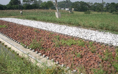在元朗排水繞道下游附近闢設了一幅七公頃的人工濕地,面積約等於十個標準足球場,由三個荒廢的魚塘改建而成,以補償因工程而失去的魚塘和農地,並為鳥類、蛙類、蝙蝠及蜻蜓等提供生境。人工濕地的南面又種有大片竹林,以吸引鷺鳥棲息。