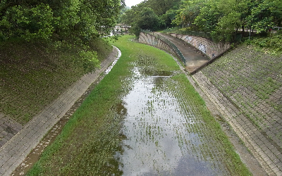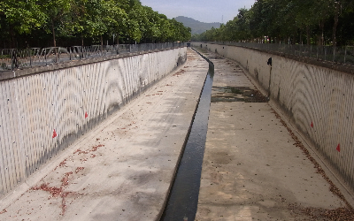 在大家面前的元朗排水绕道,底部以「混凝土草格」建成,有孔洞,让河水与地下水相互连通,并让植物生长,河道走向模仿了天然的河曲,使人工河道看起来更自然。