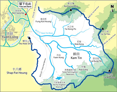 锦田河河盆被包括鸡公岭(左)和大帽山(右)的山岭包围