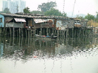 七十年代錦田河舊河口的橫水渡(梁煦華攝)