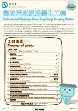 为配合未来东九龙发展,渠务署现正为观塘污水泵房进行优化工程。泵房位置邻近观塘绕道及伟业街,工程已于2017年年底展开,预计于2022年年底完成。此通讯提供最新的工程进度及相关的资讯。