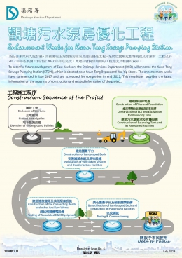 为配合未来东九龙发展,渠务署现正为观塘污水泵房进行优化工程,以应付未来观塘区发展所增加的污水。优化工程包括将泵房范围全面覆盖,并将其上盖天台绿化成园景平台,开放予公众作休憩用途。工程团队现为园景平台设计广纳意见,希望市民能给予宝贵的意见以供参考。
