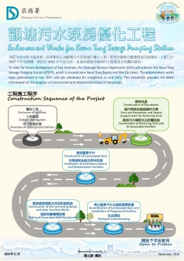为配合未来东九龙发展,渠务署现正为观塘污水泵房进行优化工程。泵房位置邻近观塘绕道及伟业街,工程已于2017年年底展开,预计于2022年年底完成。此通讯会提供最新的工程进度及相关的资讯。