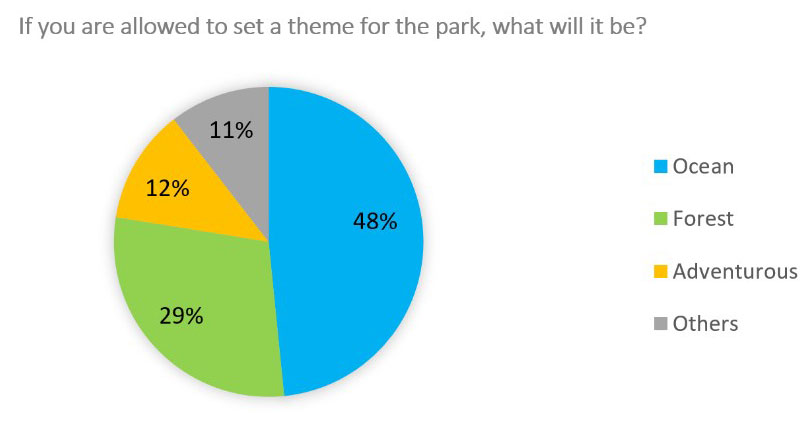 当被问到为公园设定一个主题时,近五成受访者表示,希望能以「海洋」为主题。因园景平台位置邻近海滨,故希望署方能以此为主题,配合未来观塘海滨一带的发展。