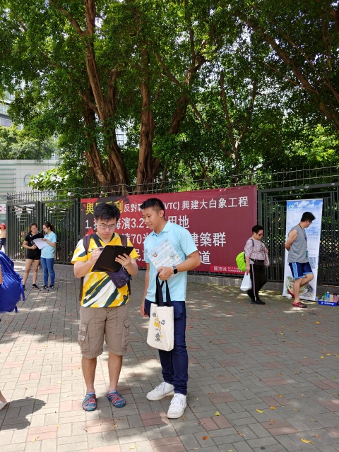 于2019年8月,渠务署及工程顾问代表,分别于观塘及蓝田为园景平台上的休憩及游乐设施设计进行意见收集。