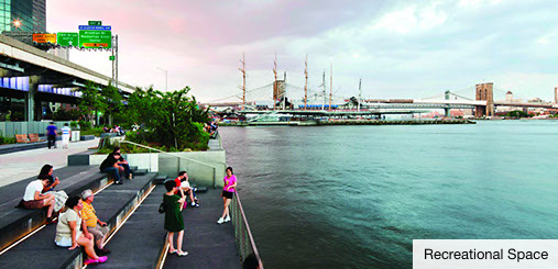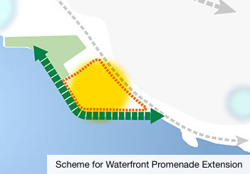 Extension of the waterfront promenade provides more recreational spaces for the community.