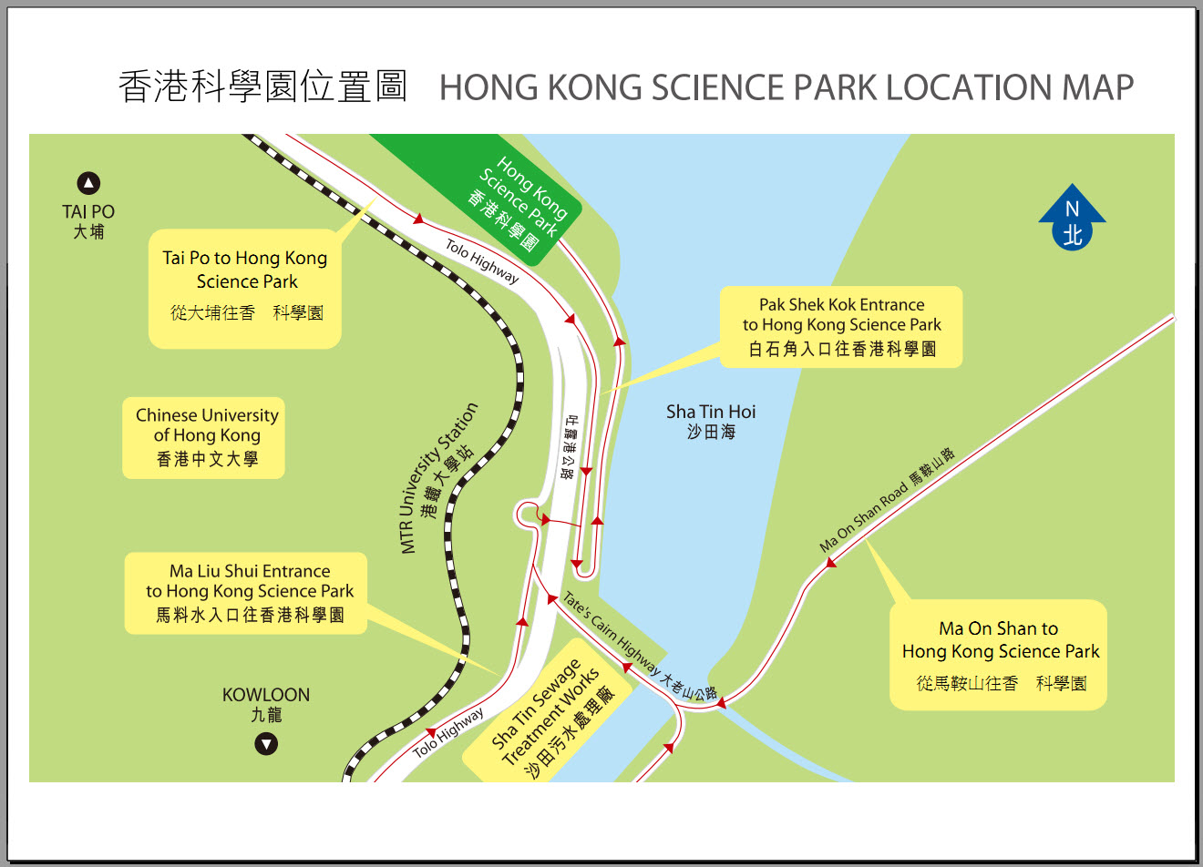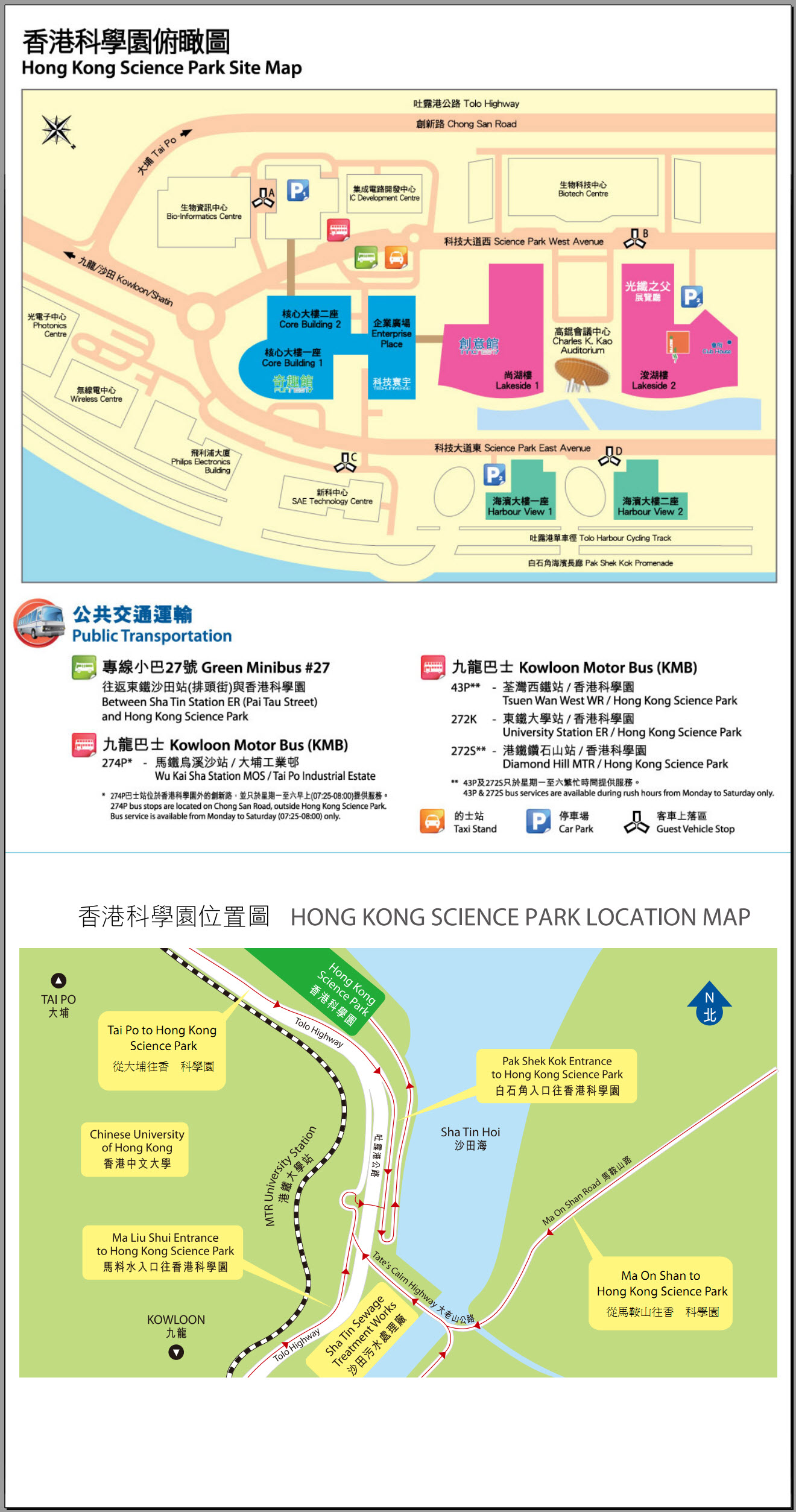 Hong Kong Science Park Location and Direction Map are attached.