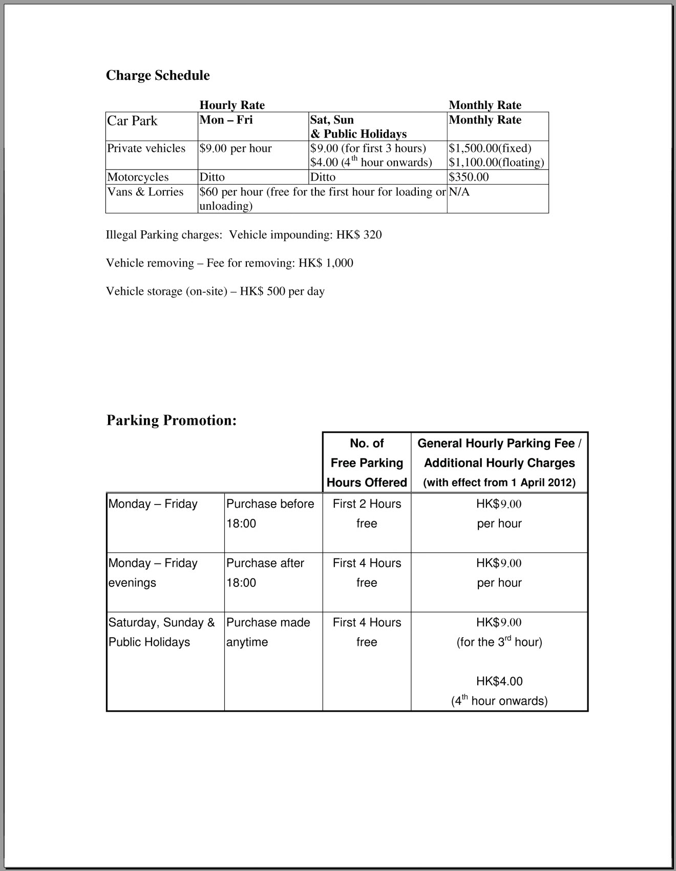 Parking rate in the Park is also attached for reference.